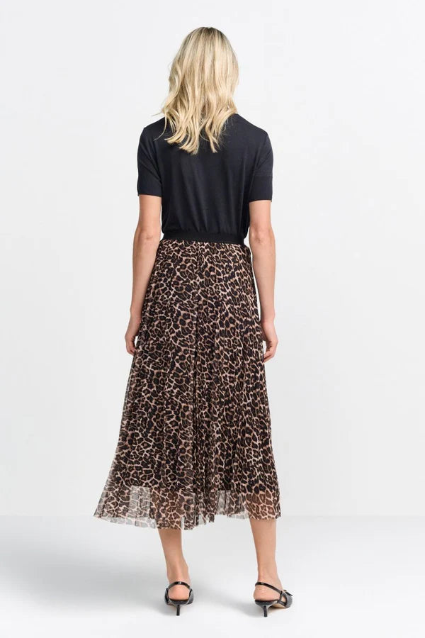 Millisítt plíserað pils með teygju í mitti.