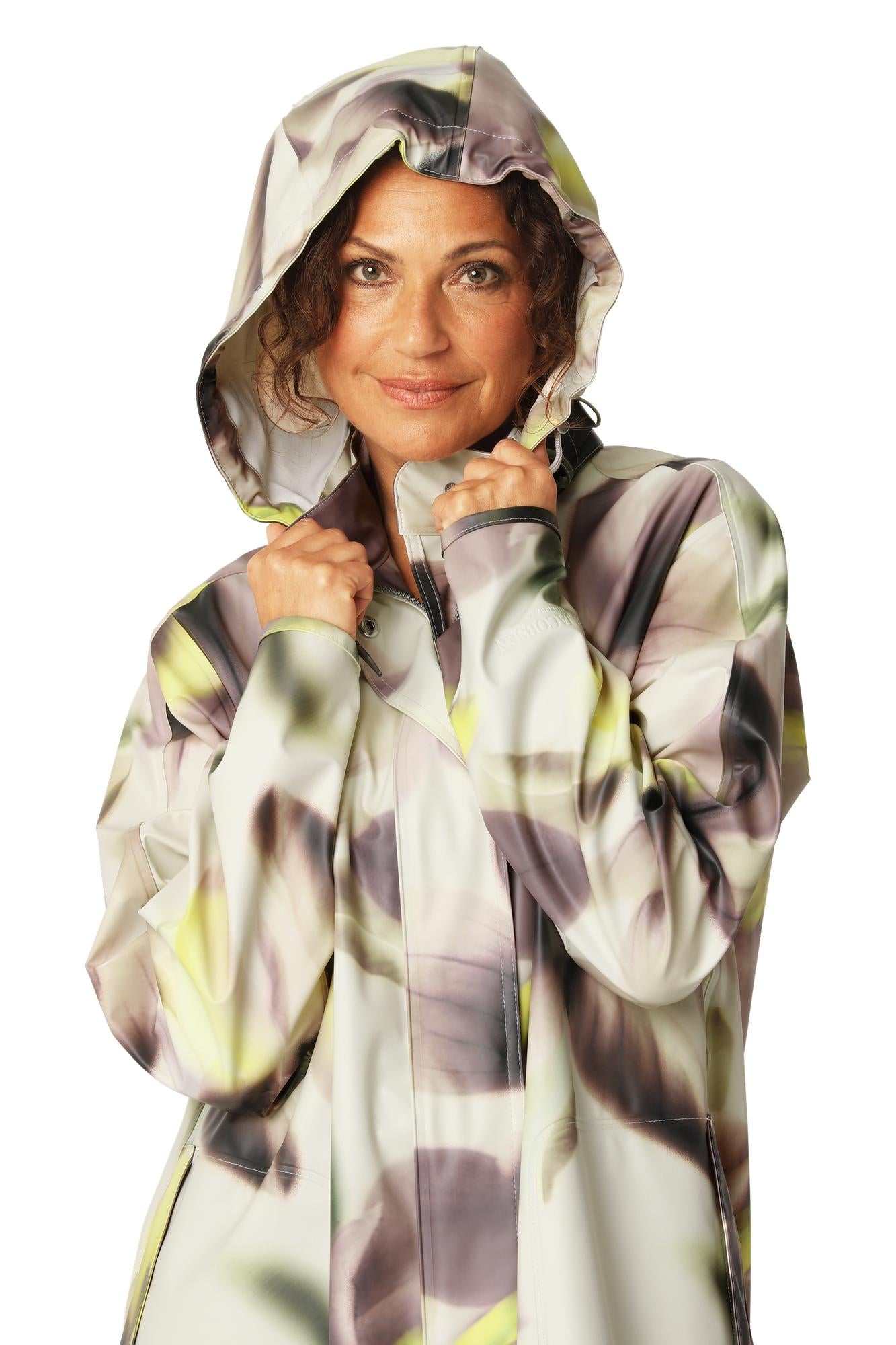 Vinsælasta regnkápan okkar komin í fallegu munstri. Vítt og þægilegt snið sem henntar vel fyrir þær sem vilja geta verið í léttum jakka undir.