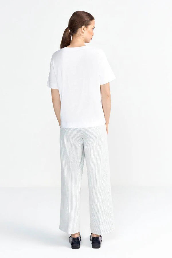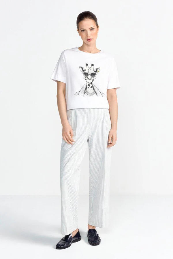 Stuttermabolur í víðu sniði, með mynd og semelíusteinum.