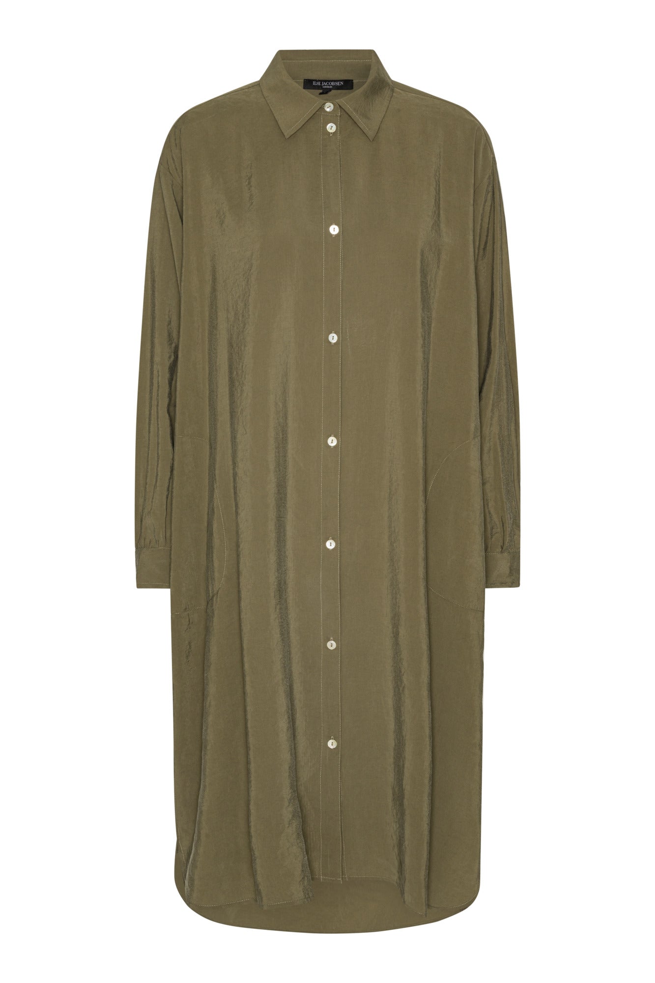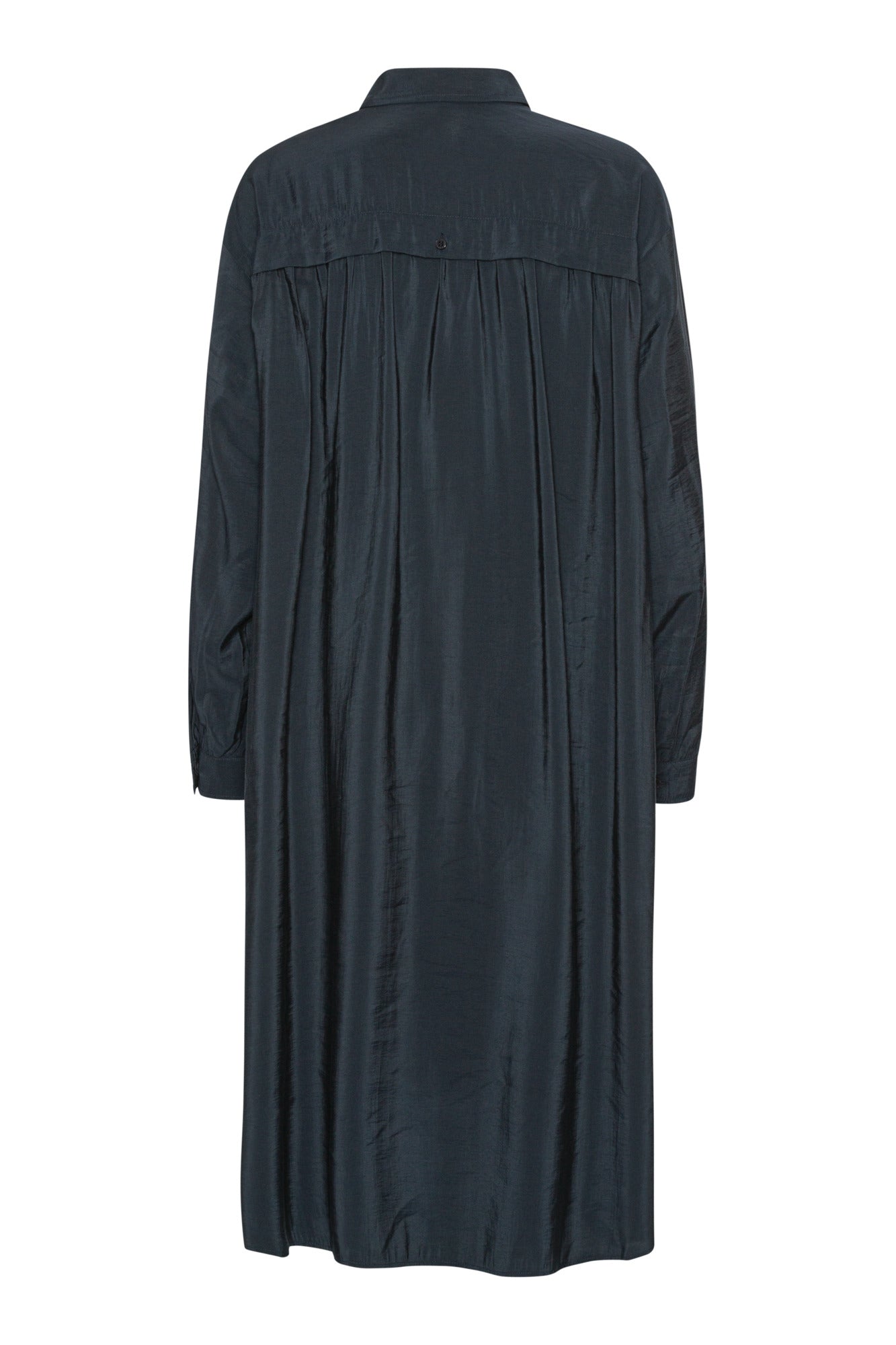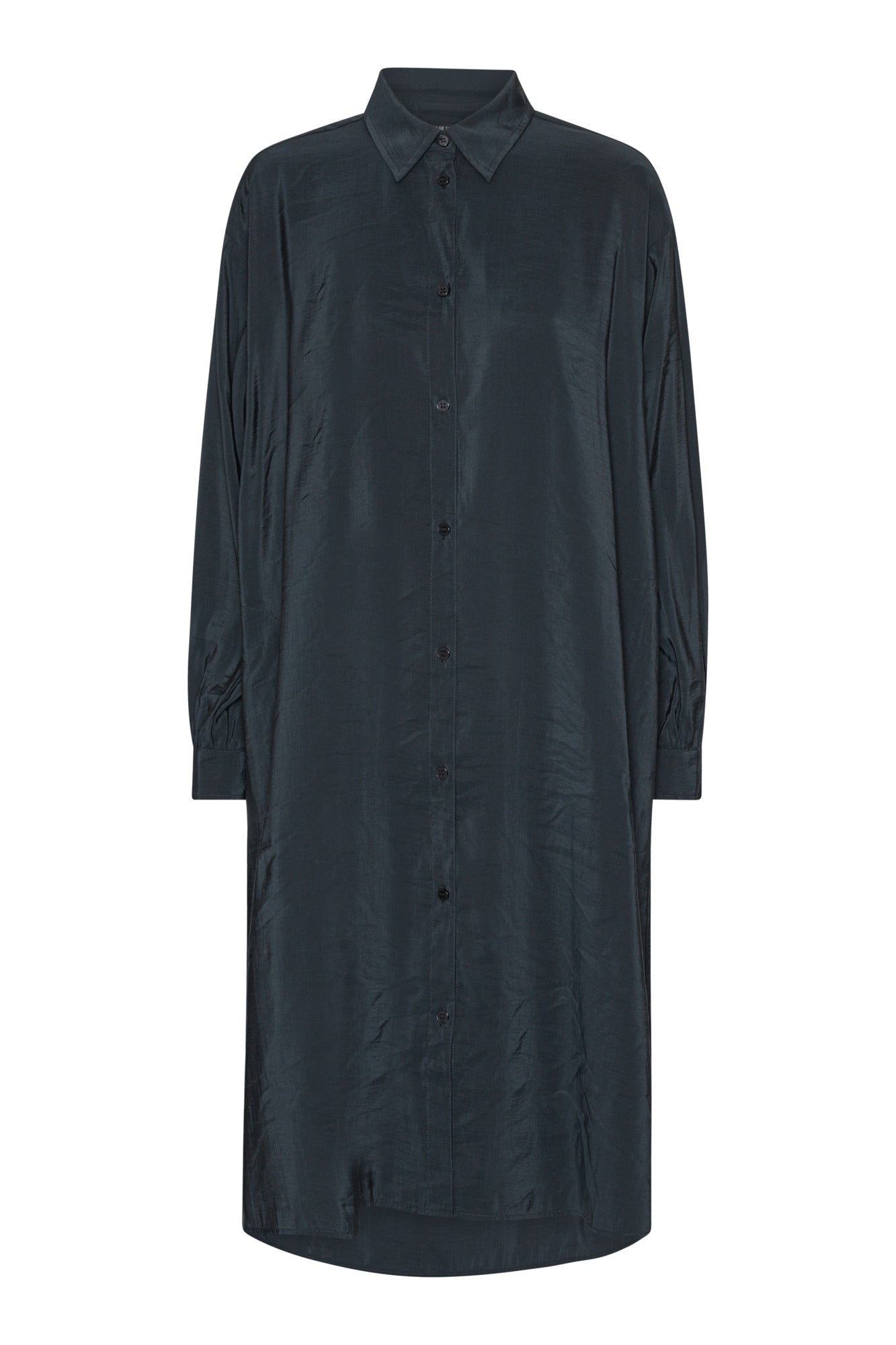 Millisíður skyrtukjóll með löngum ermum. Létt og þægilegt efni.