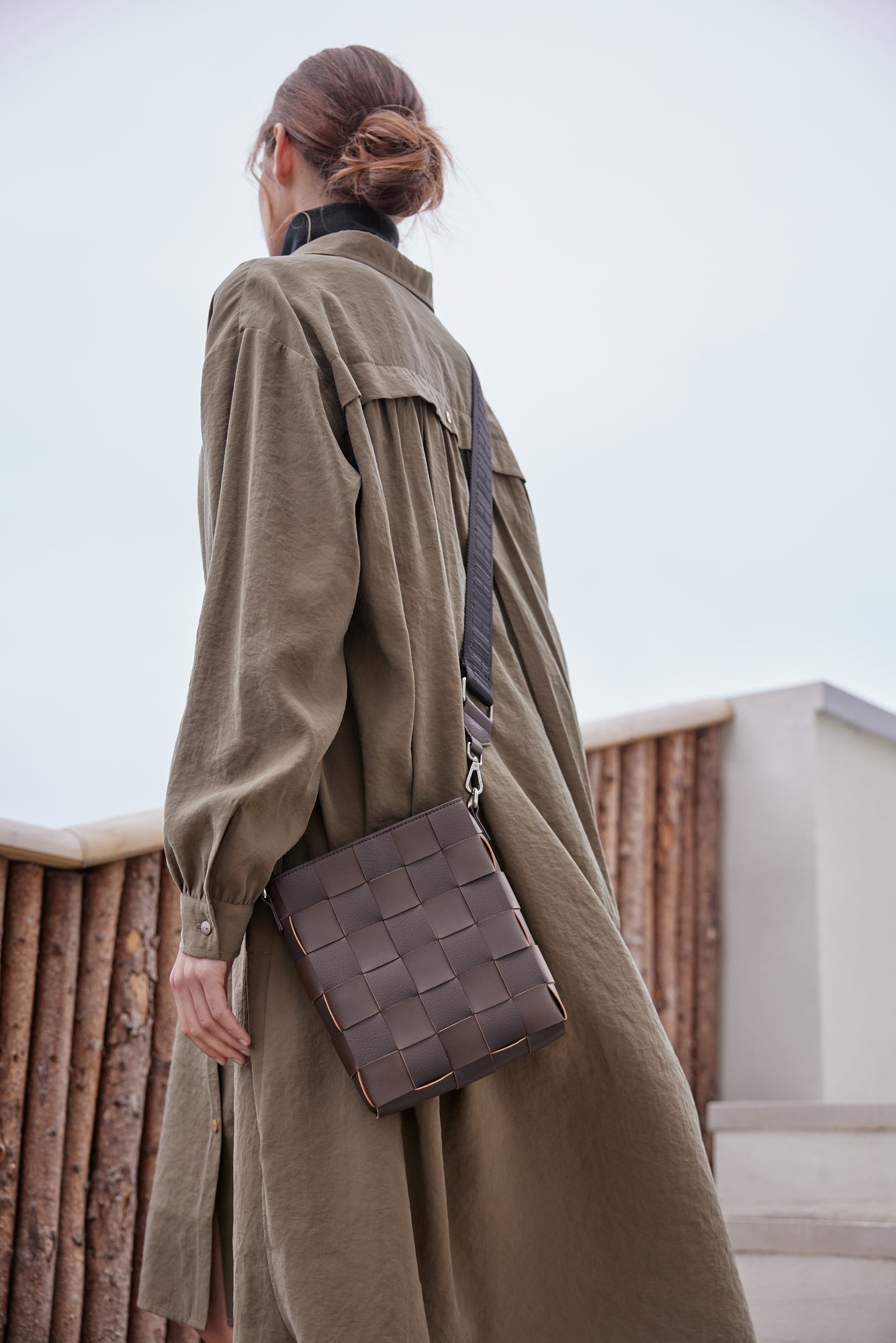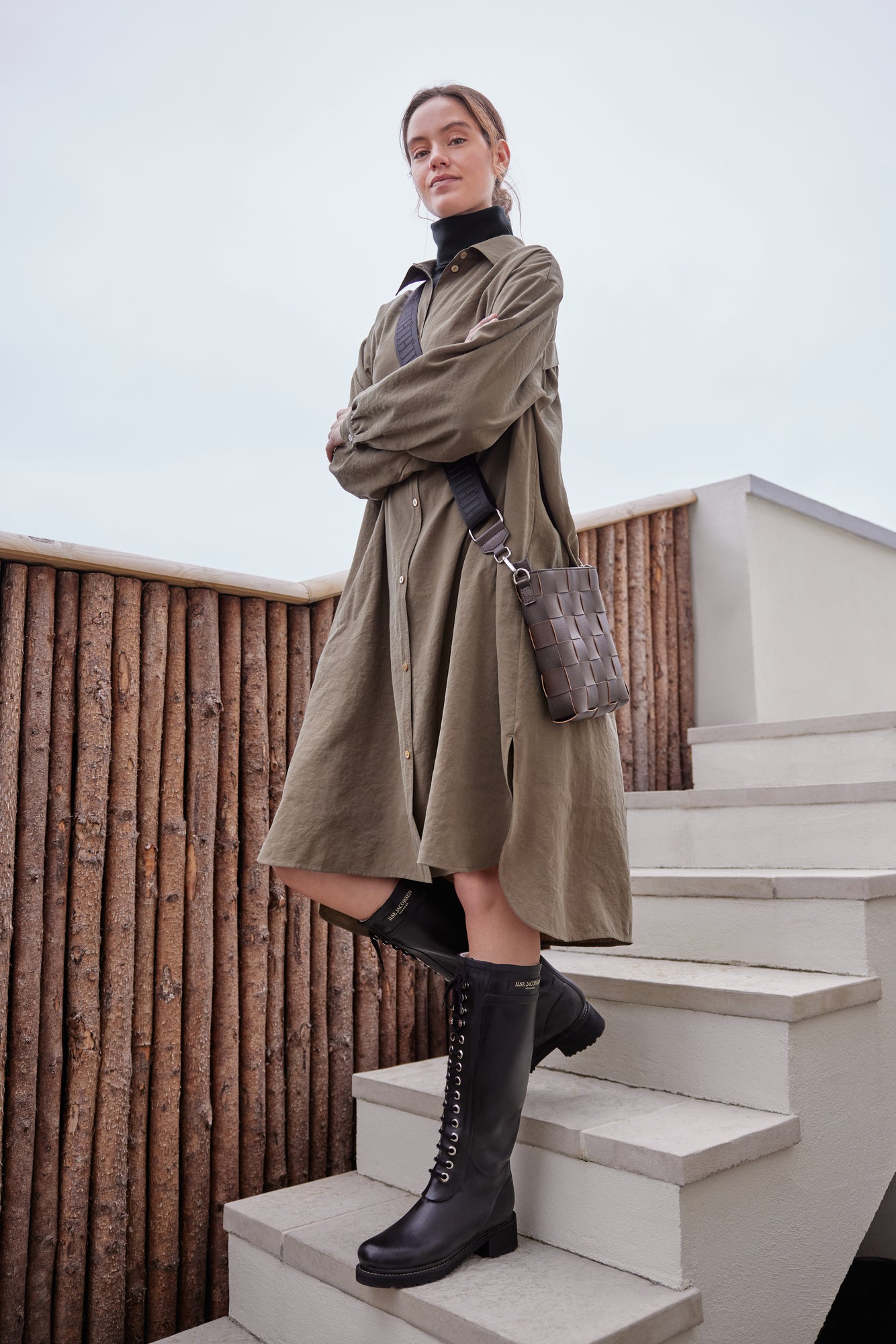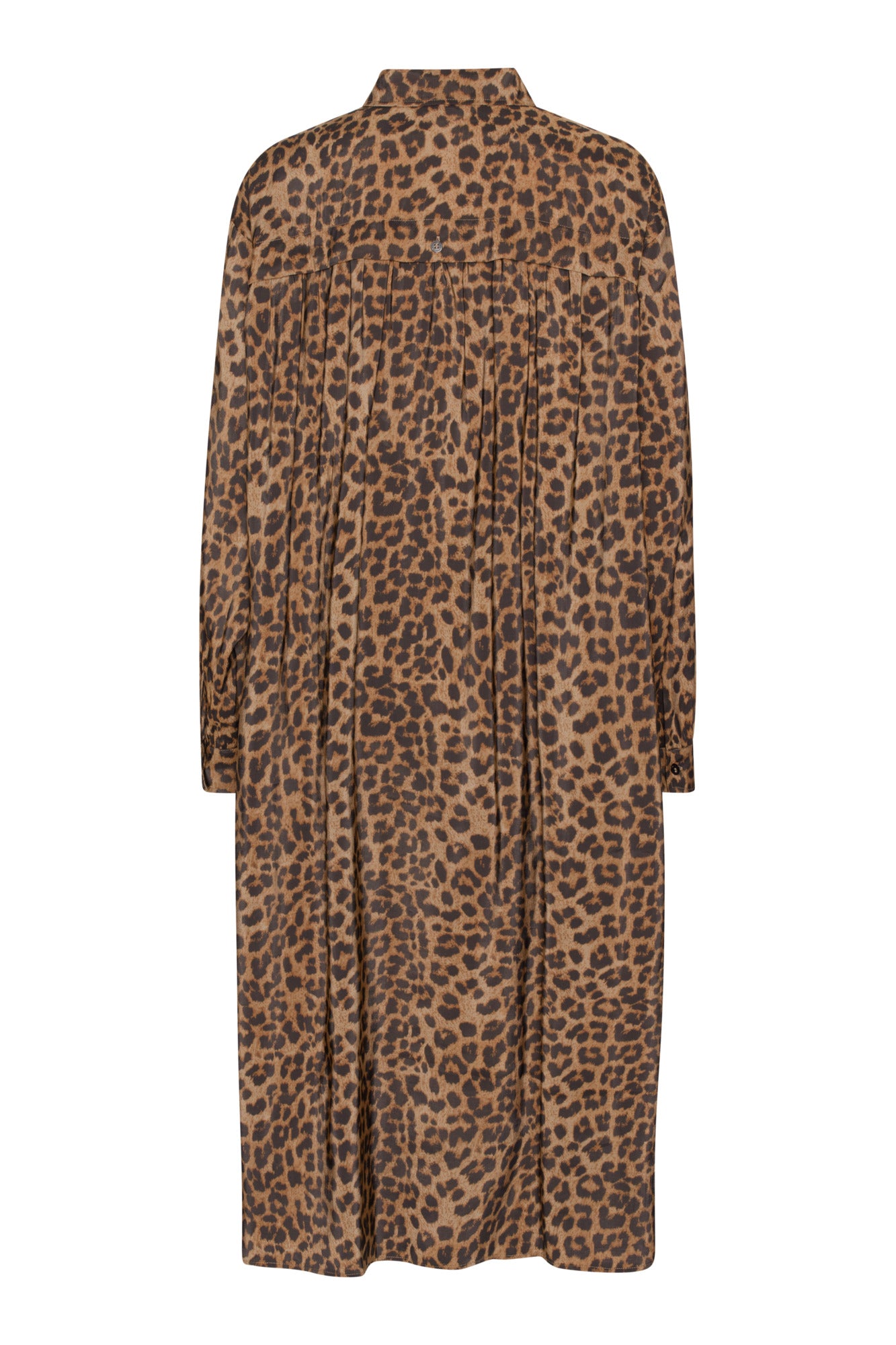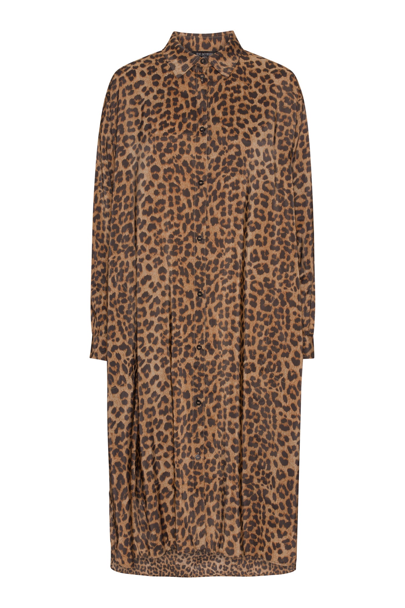 Millisíður skyrtukjóll með löngum ermum. Létt og þægilegt efni.