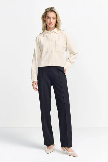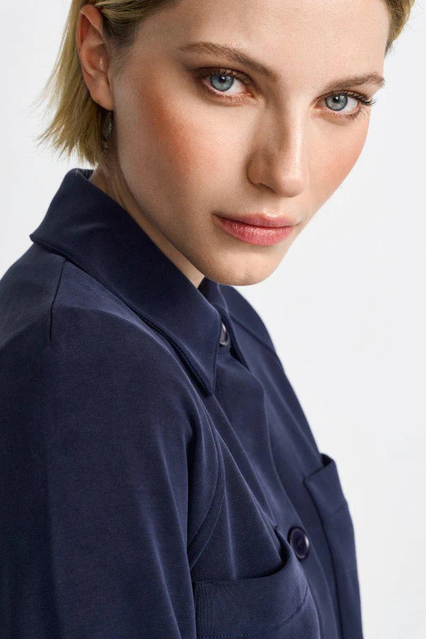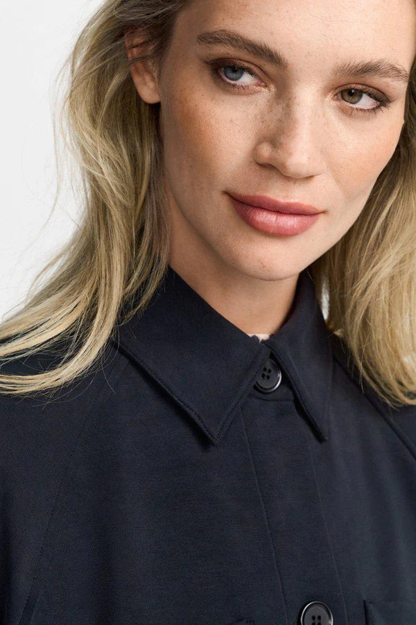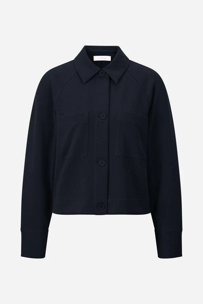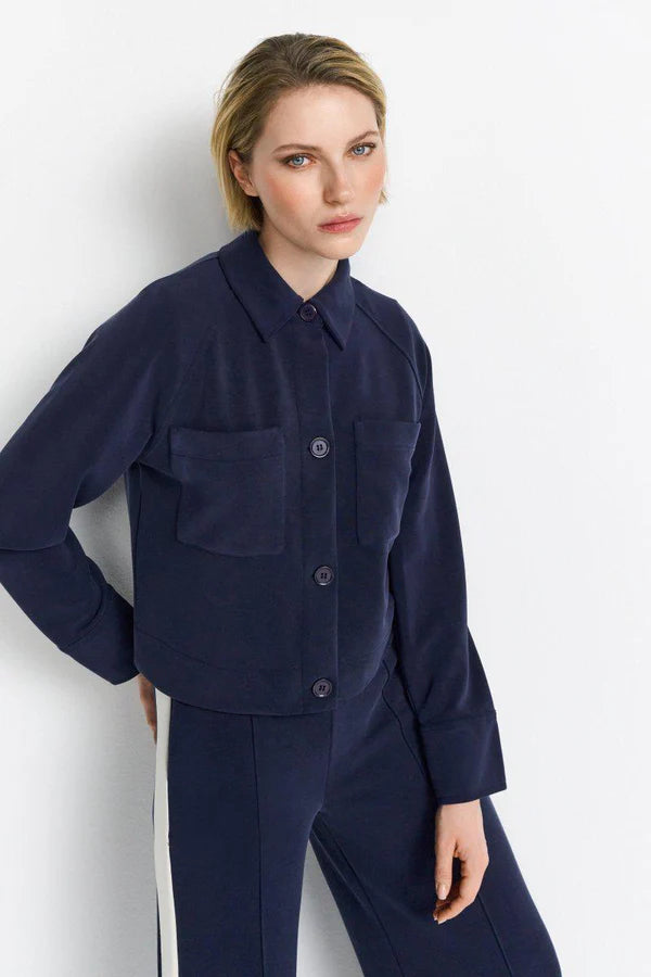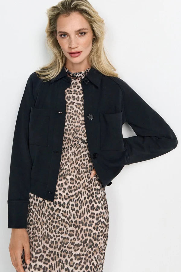 Mjúkur og þægilegur jakki úr vinsæla scuba efninu. Beint snið og hnepptur upp í háls.