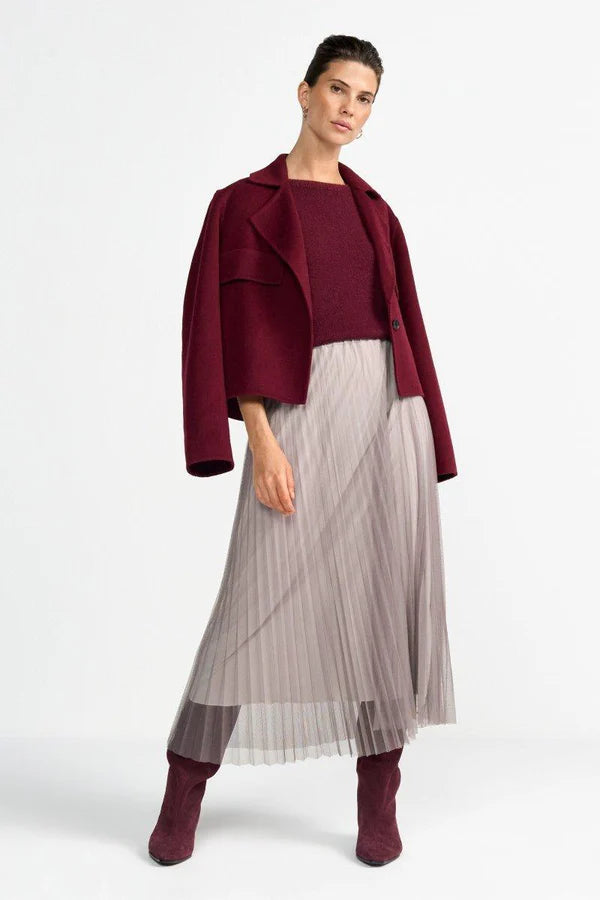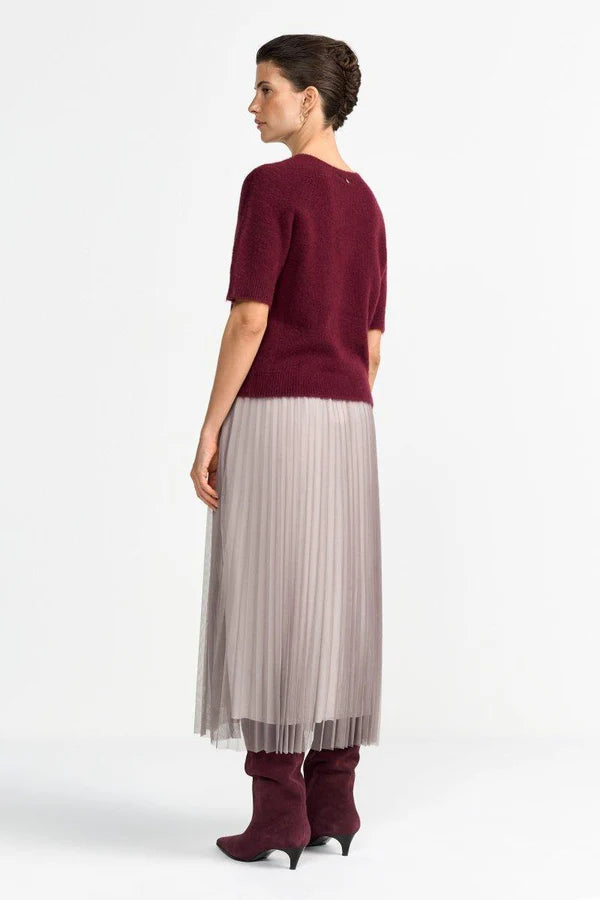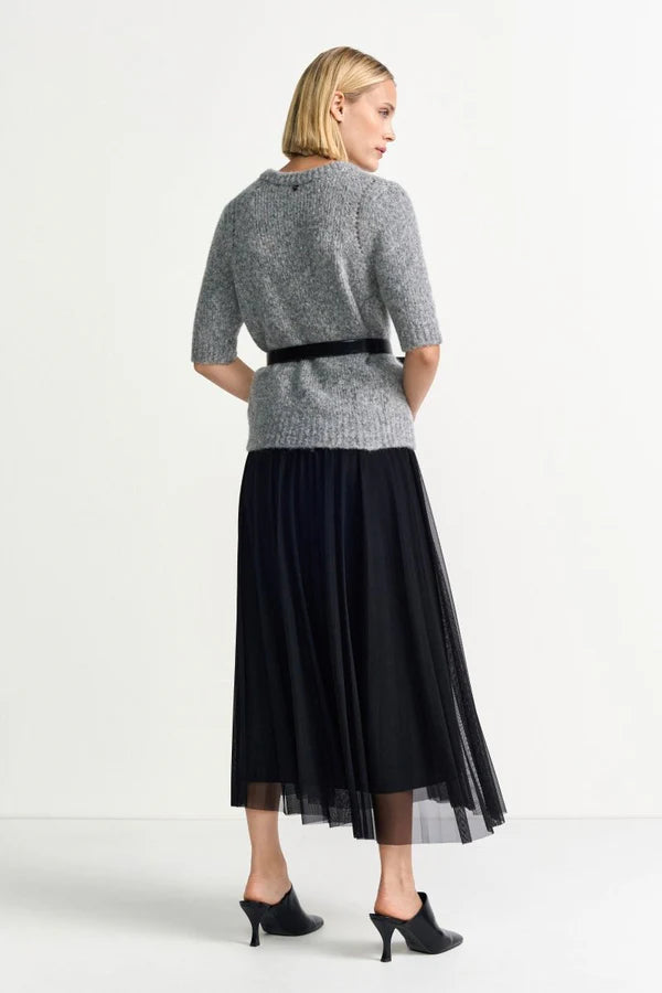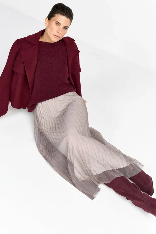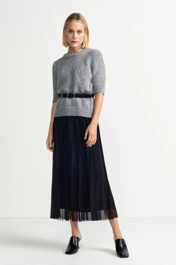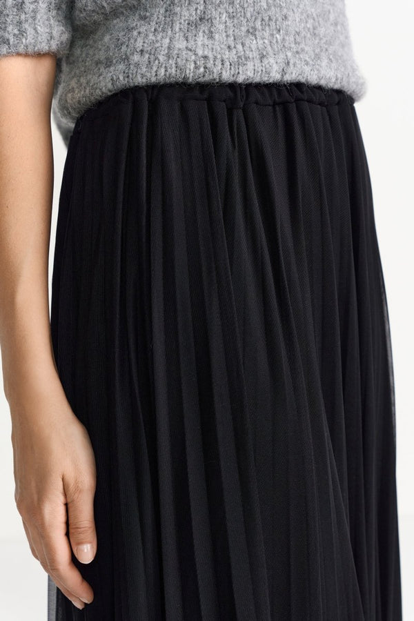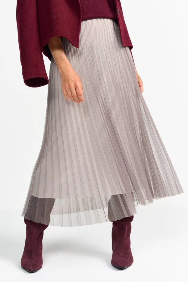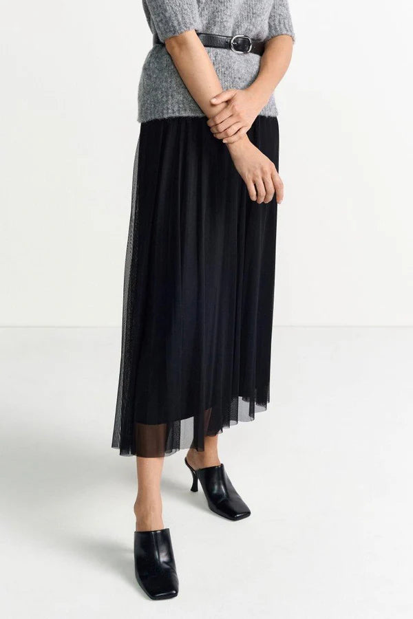 Millisítt plíserað pils, með hálf gegnsæu tjulli. Teygja í streng.