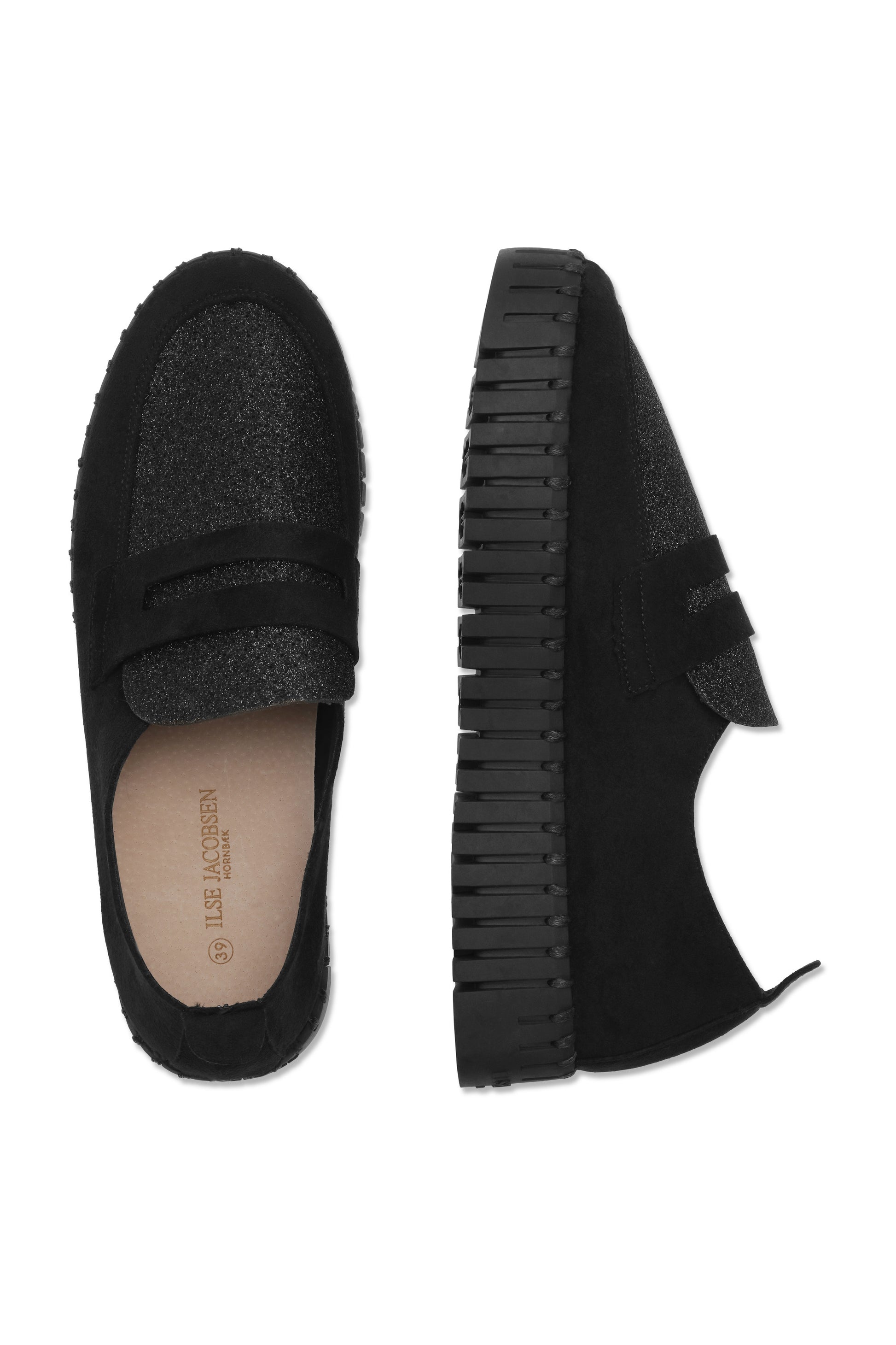 Tulip mokkasíur með glimmer. Örtrefjaefni og þykkur og mjúkur botn.
